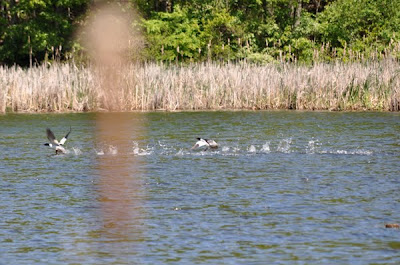 Upon returning to Arlington I decided to head over to Howell's, where I what should I see but a pair of male Common Mergansers. As I watched they both did this thing where they skittered across the surface of the pond like they had an outboard motor attached to their tail for a few feet, after which they'd take a quick dip underwater. Unfortunately, this all took place at the end of the pond that's lacking in both easy shoreline access and unobstructed views. So, no real pictures of that behavior.