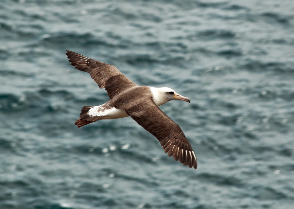 Knowing I had a number of shots of various albatrosses flying against the sky, I focused on trying to get some with the ocean as the backdrop: